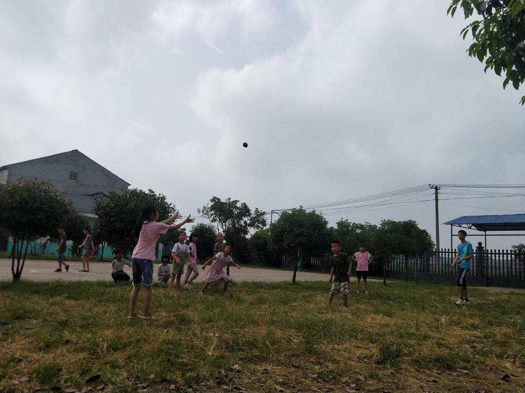 上午,没有了往日毒辣的太阳。志愿者们带着孩子上体育课。操场上,随处可见孩子们的身影,志愿者们带着孩子一起打沙包,跳大绳,学习篮球,乒乓球。在玩乐中教学,让孩子们学习更多的体育运动,就像荷花小学伍校长所说“要让孩子德、智、体、美、劳全面发展”的美好愿望。