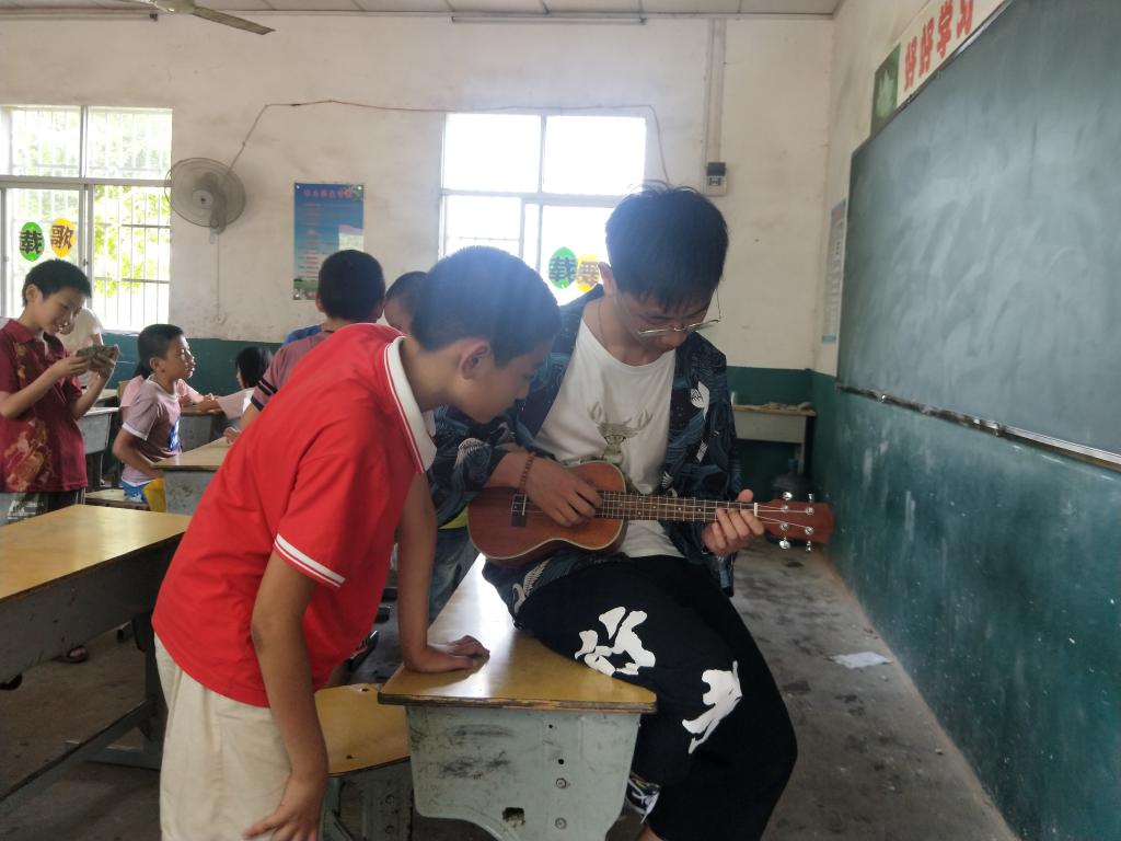 下午,为开拓孩子视野,志愿者们给孩子带来了音乐课和自然科学课。孩子们对于新奇的事物总是充满了好奇心。志愿者带孩子学习乐谱,教孩子们尤克里里入门,学习乐器也有利于培养孩子的情操及涵养。孩子们在快乐的学习气氛中充分表达自己的情感,在学习表演中树立自信心获得成就感,培养坚韧不拔的学习毅力。