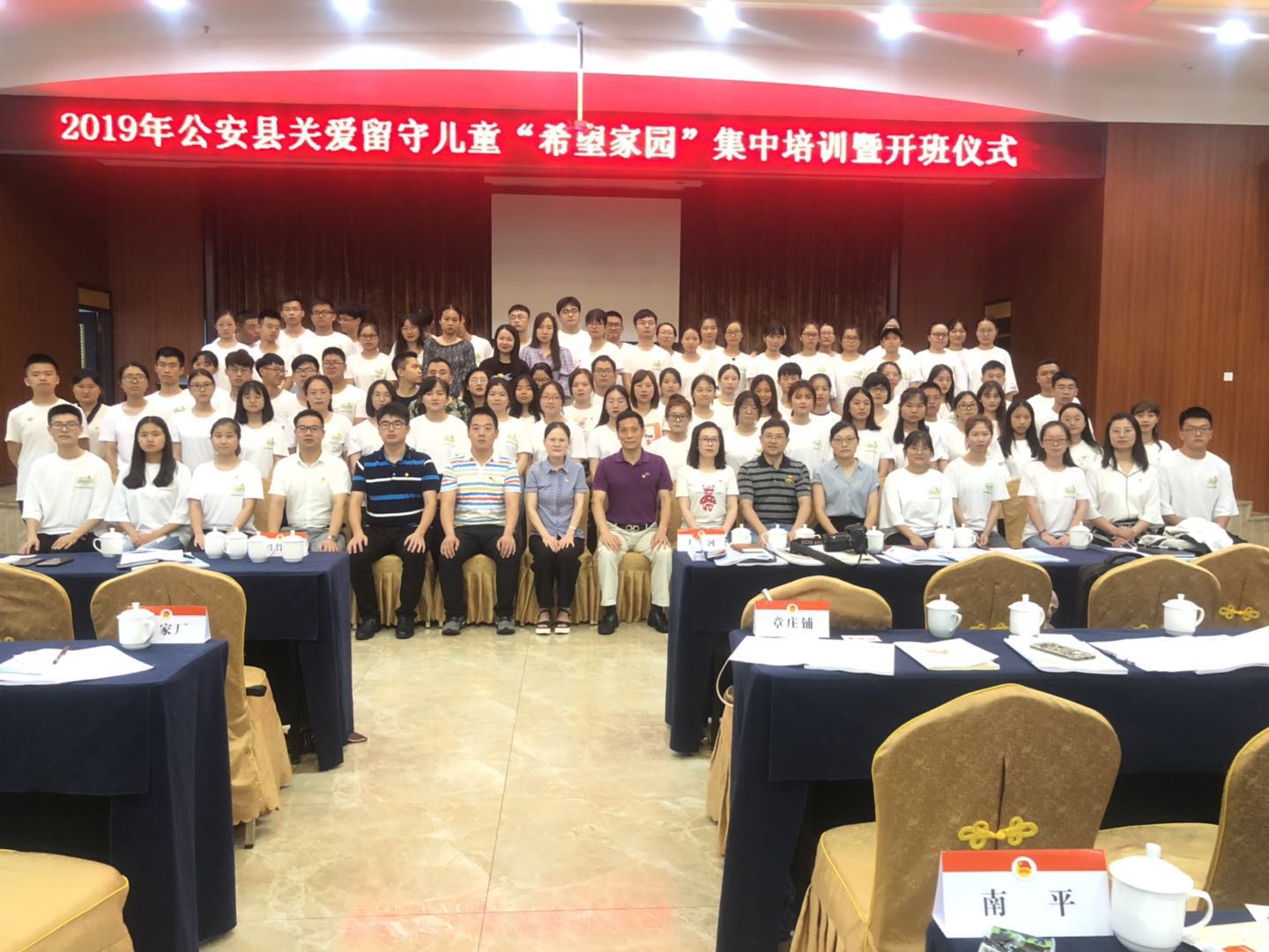 7月12日,公安县团县委举行了关爱留守儿童“希望家园”集中培训暨开班仪式,拉开了树梁之路志愿服务队暑期“三下乡”社会实践活动的序幕。团公安县委书记杨晓庆、副书记陈婷、信息与数学学院党委书记高迎斌、团委书记严星、潘大勇老师及公安县各乡镇团委书记出席此次活动。