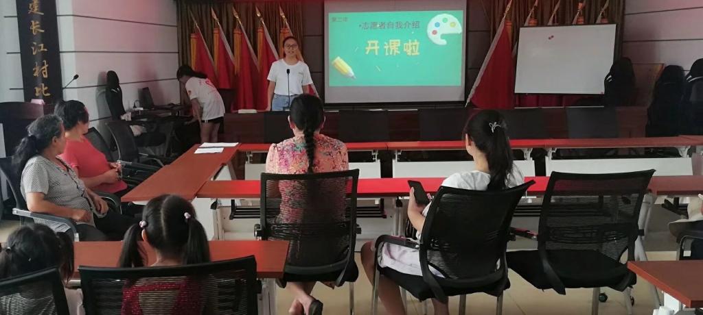 随后,志愿者详细介绍课程内容和时间安排,围绕安全教育、课业辅导、素质拓展、课外阅读、影视鉴赏等多个方面开展独具特色的活动,如江陵县白马寺镇长河村的志愿者田柳、王晓艳,为增进孩子们的熟悉度,以破冰游戏“抓手指”开场,被抓到的同学需要接受“大礼包”-特色的自我介绍或者才艺表演,在此环节中谭祥云和张健飞两位小朋友带来的横叉和竖叉表演获得全场热烈的掌声。另外,志愿者还以网络技术和教师指导相结合的方式带领同学们学唱班歌《大梦想家》,同学们热情高涨,认真学习,其中最小的同学饶天意和谭健飞一起勇敢地站上讲台领唱,再次收获热烈的掌声。