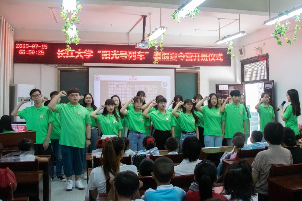 张涛说,阳光照亮人生,奉献创造价值。“阳光号列车”连续四年驶入水月寺镇中心学校,兑现了去年对孩子们的承诺,也让志愿者们的青春梦想在教学实践中熠熠生辉。