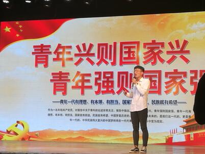 活动伊始,我校周扬威同学以《青年强则国强》为题追溯梁启超、陶行知先生的青年鸿志,阐述当代青年的责任与担当并以自己因骄傲和得失心重而比赛失利的故事为例子使全场观众明白了青年人该做些什么,如何去做才能实现中华民族的伟大复兴引起全场青年学子共鸣。