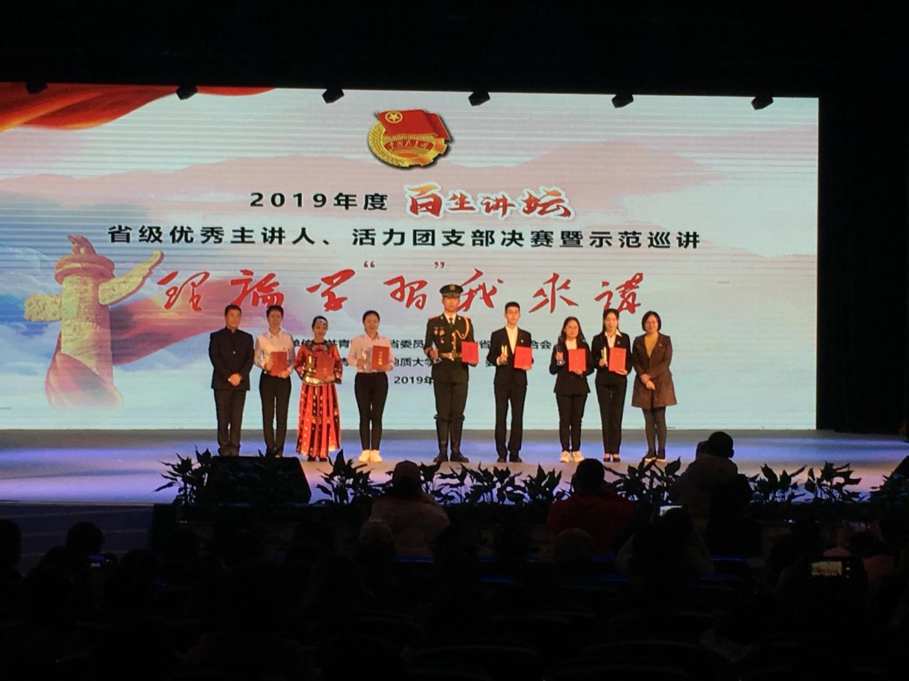 (通讯员 沈马锐 郭斯)12月8日上午9时,2019年度湖北省“百生讲坛”——共青团学习贯彻习近平新时代中国特色社会主义思想活力团支部、优秀主讲人决赛在中国地质大学(武汉)举行,我校经管学院工商11702团支部获评省级活力团支部之金牌团支部称号及决赛二等奖,动物科学学院动医卓31801班范虹宇同学荣获省级优秀主讲人之金牌主讲人称号及决赛二等奖。