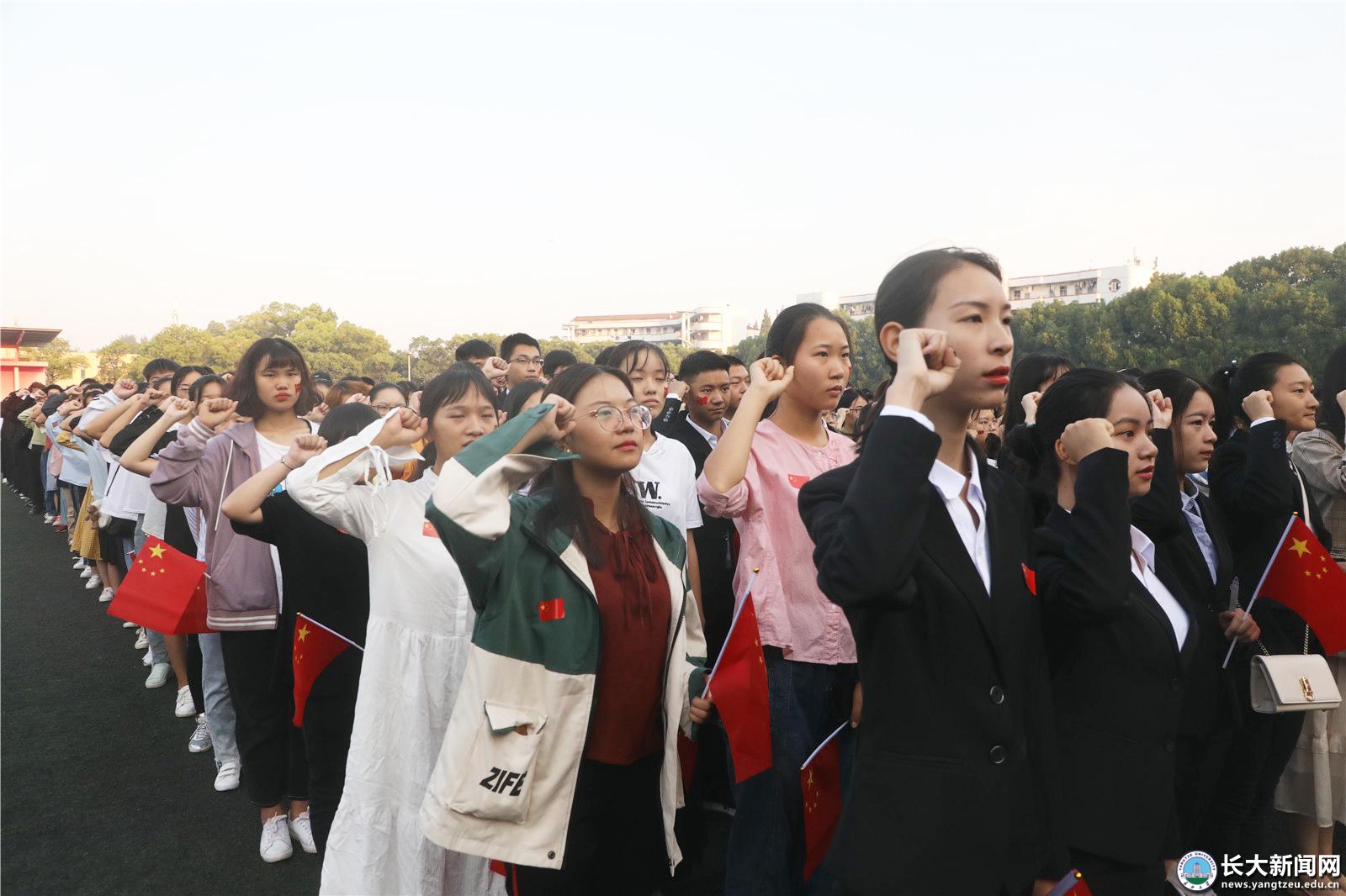 在学生代表的引领下,所有共青团员举起右手重温了入团誓词。