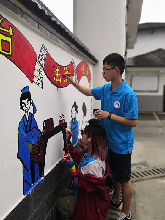 图为法治宣讲团成员在进行墙绘 通讯员 何海鹰/摄