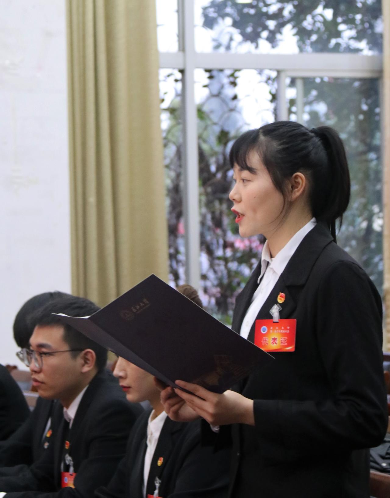 在谈到前期筹备过程中广大团员青年和青年学生对于第一届委员会工作报告的意见和建议时,学代表向宇提及,学院的提案都是涉及学生、公共设施等五个方面的若干问题。向宇的回答都切实反映了此次三代会的召开是从学生实际出发,旨在聆听莘莘学子的声音,更好地完善学校的各项制度条例,落实“全心全意为学生服务”的宗旨。
