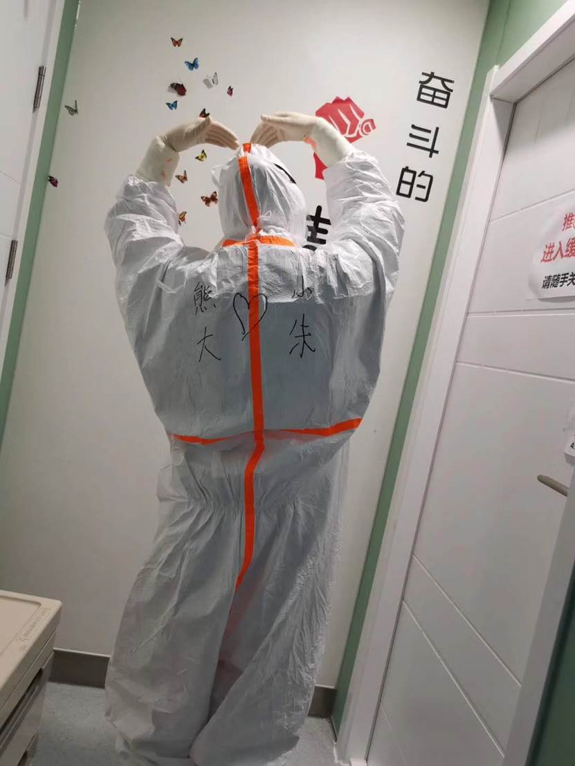 疫情前的她已经为原定于2020年1月30日的婚礼筹备半年有余,但当战“疫”的号角声响起的那一刻她决定一切搁置,积极参加前线治疗工作。也许这有些遗憾,可遗憾之余的她一直和同事尽全力地奋战在前线,不曾后悔自己的选择。她说:“上班很苦,困难很多,但我从不会流泪。每每看到所有人都在努力,便会被深深的感动着,每天也和所有人一样,祈祷着疫情早日结束,所有人平安,然后一起在太阳下拥抱,早日脱下口罩,露出我们最开心的笑。”