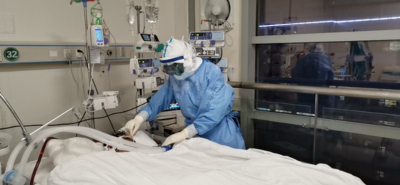 重症病房里的压力远远大于普通病房,超强的毒性,生活不能自理的病人,ECMO和CRRT的连续转换,精神紧绷,时刻要警惕各种报警以及特殊情况的应对。她每天深夜1点下班,用酒精洗脸洗鼻孔耳道,用双氧水漱口,额头和鼻梁上被帽子口罩护目镜和面屏压了深深的一道压疮。当她脱下三层衣服,汗水从背流到了脚跟,双手也被五层手套捂出汗水起了白皮。