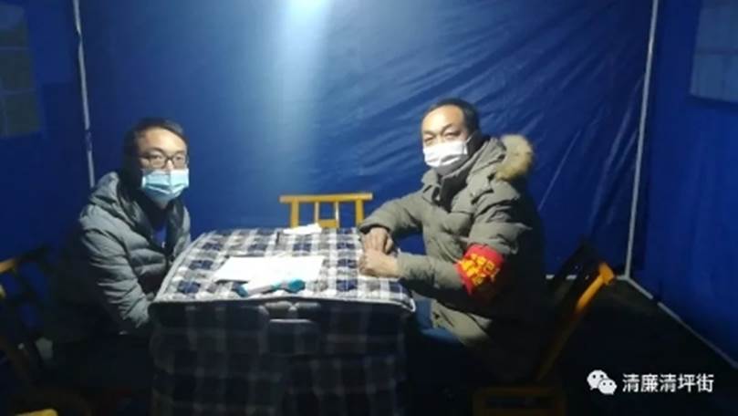 2月9日,随着管制措施的进一步加强,清坪街社区设立了三处关卡,用以严格管控人员、车辆的流通。其中的大石垭关卡,正好位于邓彬彬家附近。这一次,邓彬彬再也坐不住了,加上近段时间强有力的防控举措也让父母少了几许忧虑,千言万语他终于说服了父母,而写好的请战书迟迟没能发出。考虑到自己离关卡近,邓彬彬便主动配合清坪街社区的工作人员,承担起晚班的值守任务,将最苦的活儿揽到了自己身上。每天晚上一直坚守到最后,寒夜的点点星光照亮着每一个交通管制下的夜晚与值守人员。邓彬彬的家人也为之所动,主动为值守点提供后勤保障,烧水泡茶,烹制点心,确保值守工作顺利开展。一杯杯热气腾腾的茶,一碗碗香气四溢的点心,温暖了值守人员的心,更让大家在这艰难的时刻重拾信心!