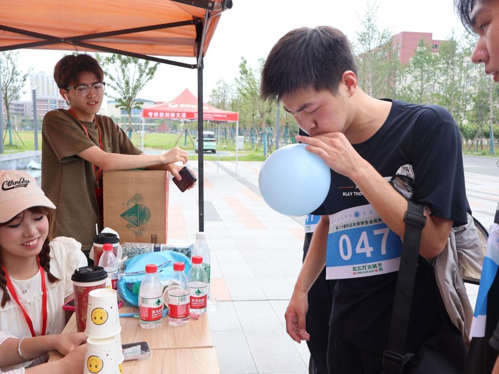骄阳似火,热情洋溢。随着一声“开跑”,120余支队伍从田径场奔赴至校园各处的28个游戏点,每支队伍除完成13个必玩游戏外,还需搭配5个选玩游戏,才能顺利通关。在游戏点,团队或是党史知识对答,或是球类竞技,或是歌唱娱乐,百余支团队穿梭于楼栋、操场、林间小道,队员们灵活协作、通力配合,校园内处处洋溢着青春的气息,气氛热烈。