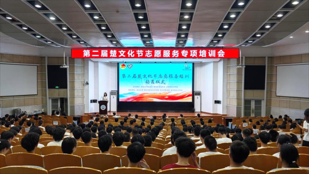 (通讯员 桂凯丽 李勋 高小斌 王芊予 江彤)9月16日晚,第二届楚文化节志愿者培训会在我校顺利召开。荆州团委副书记王文雯、校团委书记沈谦、校团委副书记杜岳青、楚文化节志愿服务工作人员及近300名志愿者共同参加了本次培训。