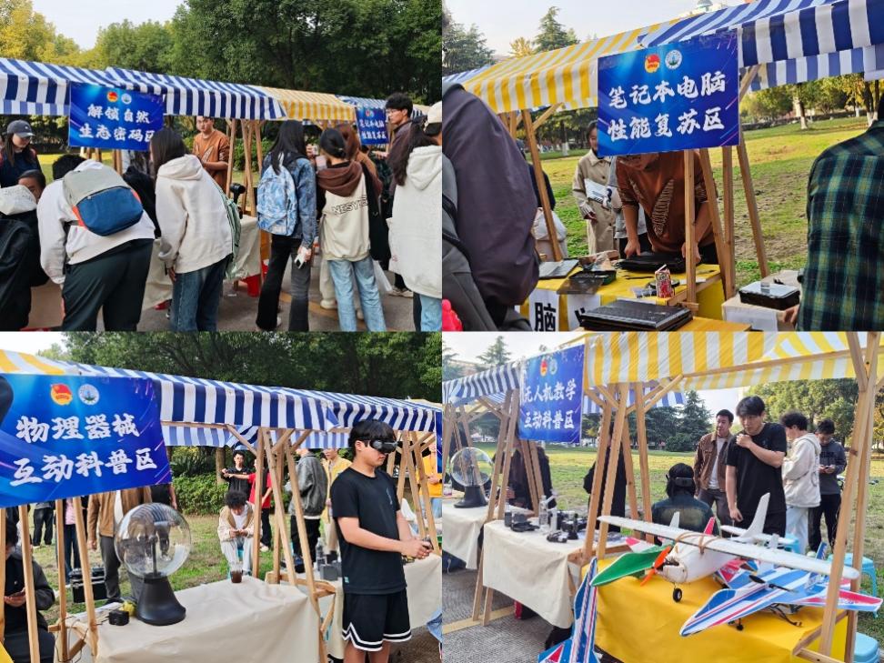 本次活动环节多元,既展示第19届“挑战杯”全国大学生课外学术科技竞赛韦德体育bevictor获奖项目,开展赛事科普宣讲,也设置计算机义诊,自然生态探秘,量子物理器械互动,无人机试飞教学,结构模型展示及制作等科普体验活动。