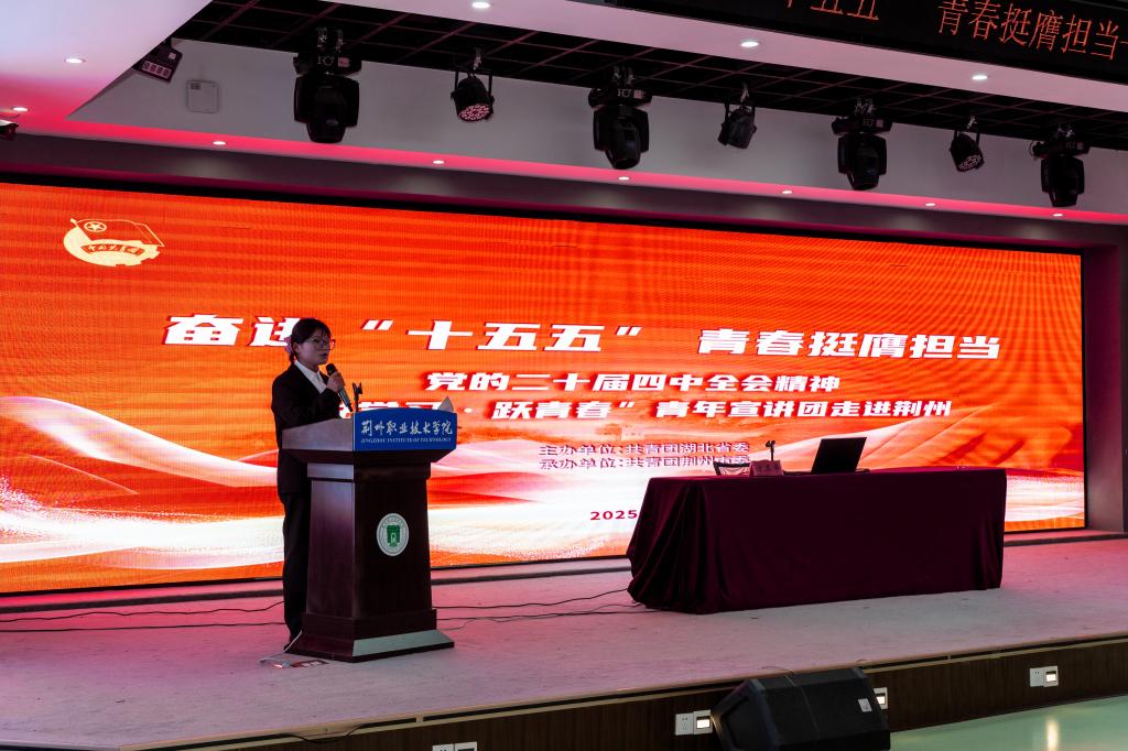 (通讯员 唐佳雨)为推动党的二十届四中全会精神在青年群体中入脑入心,12月2日,“奋进‘十五五’青春挺膺担当——党的二十届四中全会精神“悦学习·跃青春”湖北省青年宣讲团走进荆州。我校马克思主义学院2024级本科生,“信·荆楚”团队成员方玉卓受邀参加并做宣讲。