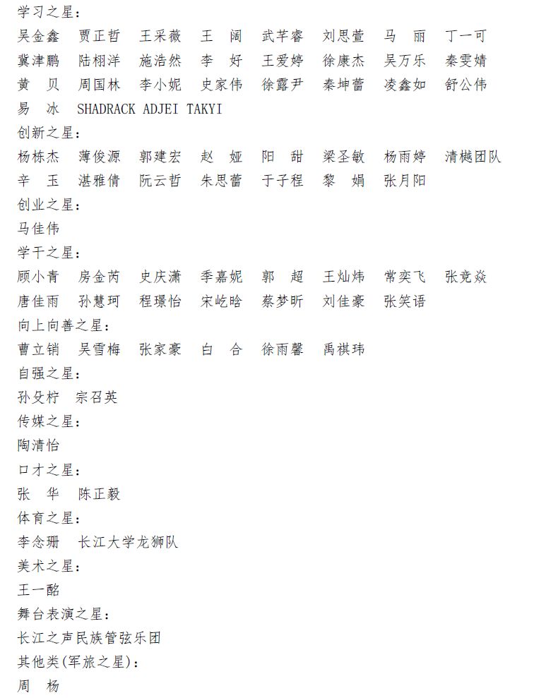 第十九届(2025)“长大之星”人员名单如下(排名不分先后):