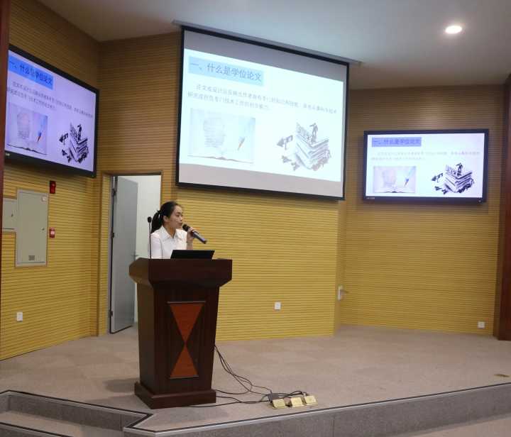 活动第三部分刘春艳老师为大家做学术论文写作培训。刘老师就什么是学术论文和论文的基本结构等进行了细致的讲解,重点讲了优秀论文范例、如何创建一个吸引人的简短标题等。