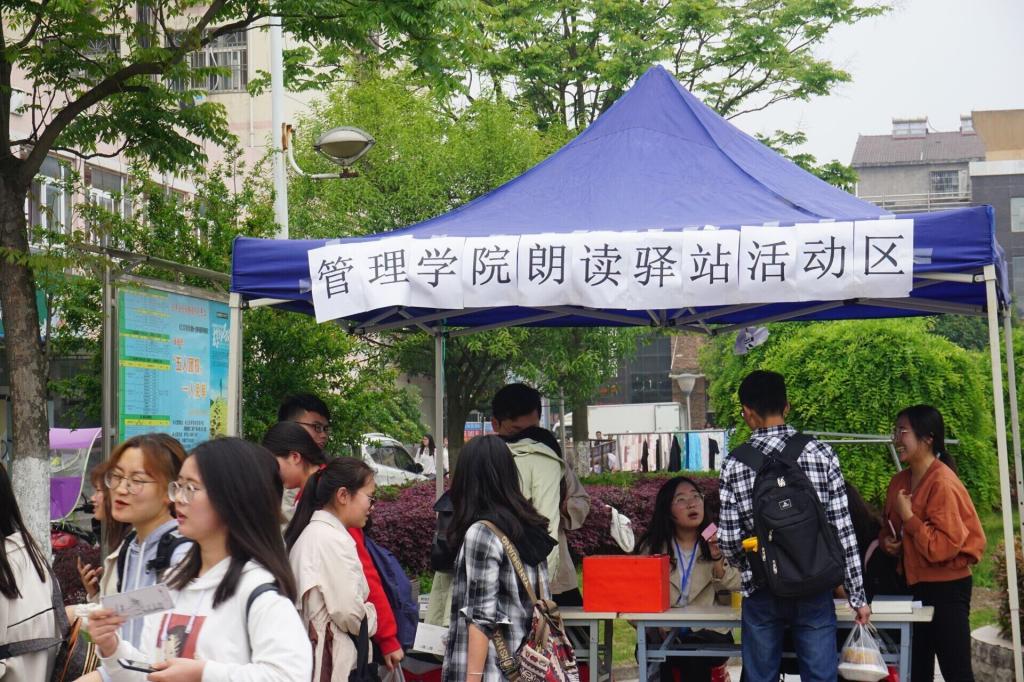 (通讯员 魏秋燕)为响应世界读书日,4月23日上午,管理学院团委学生会在新风大厅对面的人行道两侧设立了朗读驿站,为路过的师生准备了朗读的书籍和趣味文化知识问答题目。