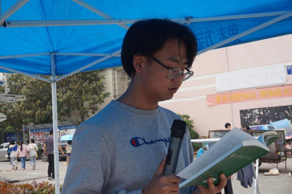 会计11702班的李子健同学选择了一本英文书籍,并流利地朗读下来,不少同学被其醇厚地道的英语口语所吸引。李子健表示,自己经常朗读书籍,并一直保持着每周阅读的好习惯。