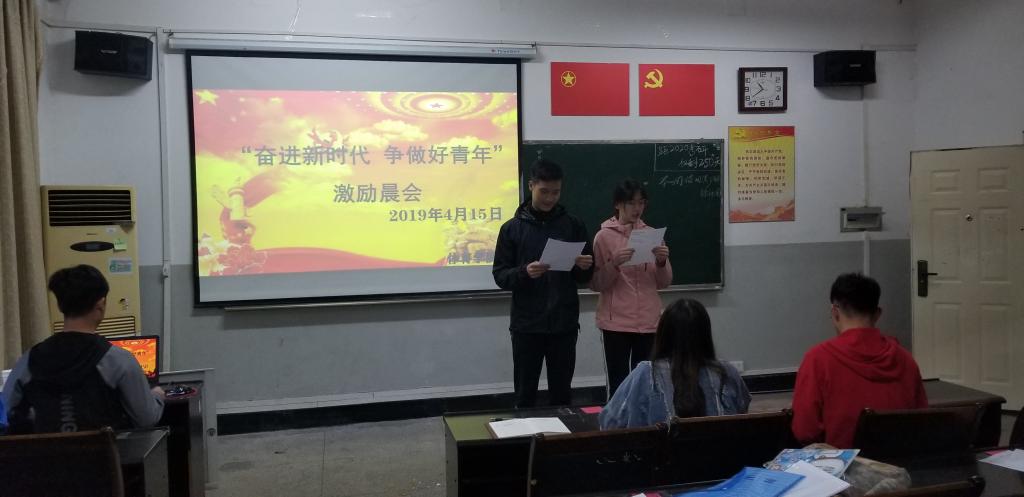 活动伊始,主持人对本次的主题思想进行阐述,宣布本次激励晨会正式开始。本次激励晨会由团委学生会组织部、宣传部、文艺部组织筹办,在“奋进新时代,争做好青年”的主题下,同学们精心准备了节目。其中现代诗朗诵《面朝大海,春暖花开》《我的大学生活》,号召大家用积极进取态度面对生活。合唱《我和我的祖国》积极向上,慷慨激昂的歌词调爱国情怀进一步得到升华。文晓武老师带领全体同学重温入团誓词,更是激发了学生的“使命感”和“责任感”。活动最后文老师带领大家参与了升国旗仪式。