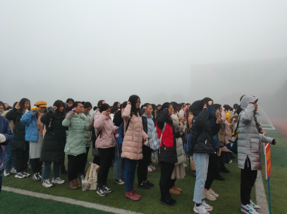 升旗仪式结束后,全体师生绕操场慢跑两圈。同学们不惧寒风凛冽,浓雾弥漫,迈着坚定的步伐,红色的塑胶跑道与马院学子积极向上的精神面貌交相呼应。