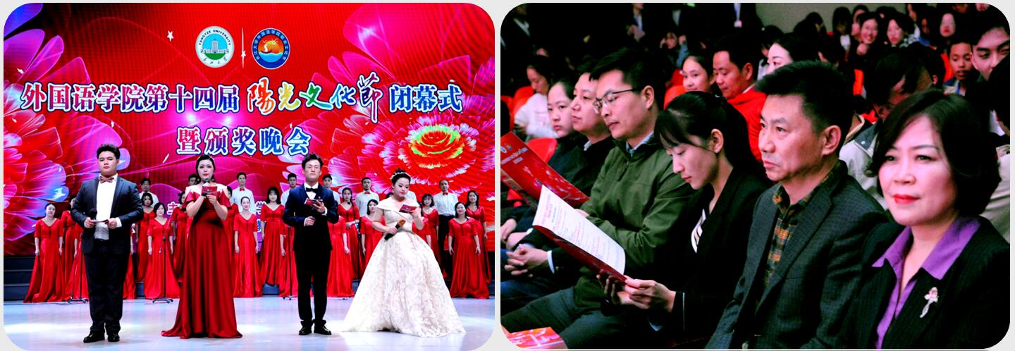 (文/谭晧洋 韩思洁 摄/曾尉 吴一楠 袁缘 徐睿 田丰 张芷艺)传播阳光文化,传承外院精品,历时2个月的外国语学院第十四届“阳光文化节”圆满谢幕。11月16日晚,“阳光文化节”闭幕式暨颁奖晚会在东校区大礼堂隆重举行。校党委组织部常务副部长李应军,校党委研究生工作部副部长毛德波,校团委副书记张娟、秦良斌,教务处副处长郑健、游晓莉等学校职能部门领导,深圳市优教优学教育科技发展有限公司创始人元海斌以及学院领导出席闭幕式暨颁奖晚会,与学院师生共同感受了本届阳光文化节的耀眼时刻。
