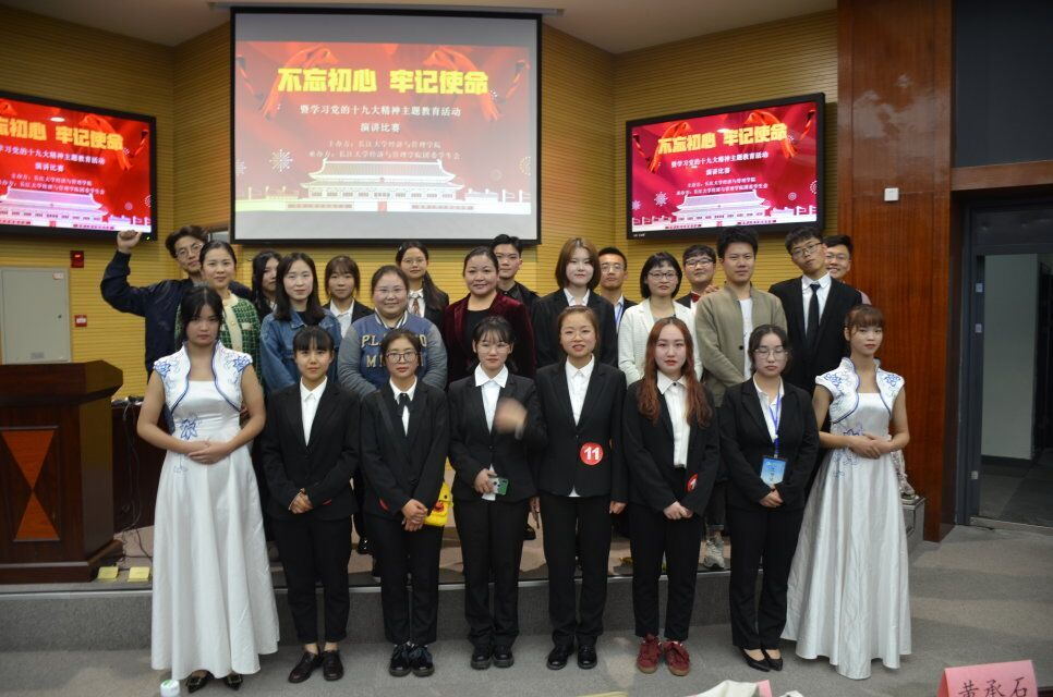 (通讯员 王巧)11月6日晚7时,经济与管理学院于农科大楼1056报告厅举行“不忘初心,牢记使命”主题演讲比赛决赛。党委副书记王中梅、分团委书记孙萌,以及辅导员杨雪、桂凯丽、任玉婷、黄承石担任评委。我院近300名学生观看本次演讲比赛。
