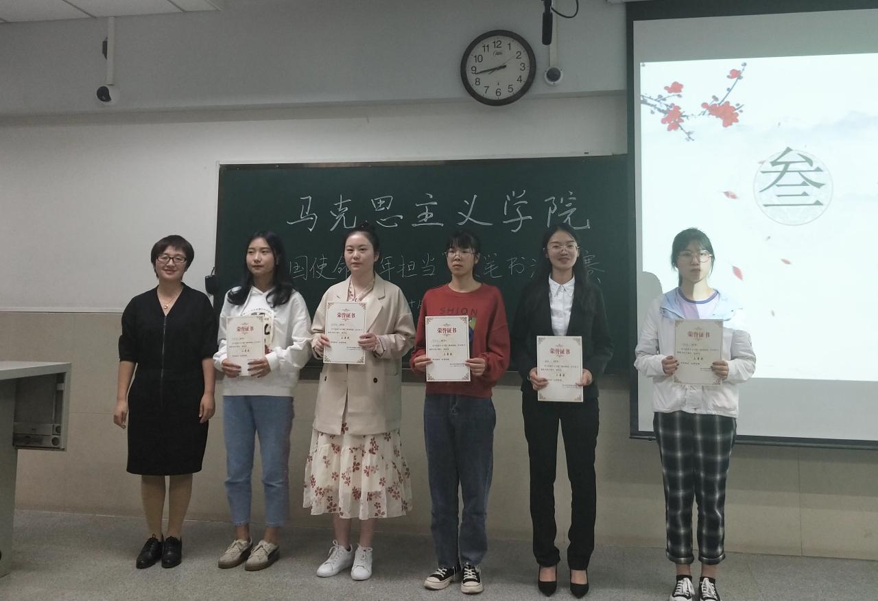 为庆祝新中国成立70周年,发扬爱国精神,传承传统文化,马克思主义学院特举办“强国使命,青年担当”硬笔书法大赛。10月21日晚7:00,“强国使命,青年担当”硬笔书法大赛决赛在12教302顺利举行。校学工处副处长周书航、学院党委书记吴智勇,党委副书记马小佼,院长助理徐骆、班主任汤波兰、全体专兼职辅导员和全体大一大二大三学生参加比赛。