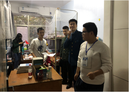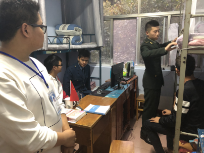 我院学生会宿建部成员与退役大学生士兵联合检查宿舍安全卫生