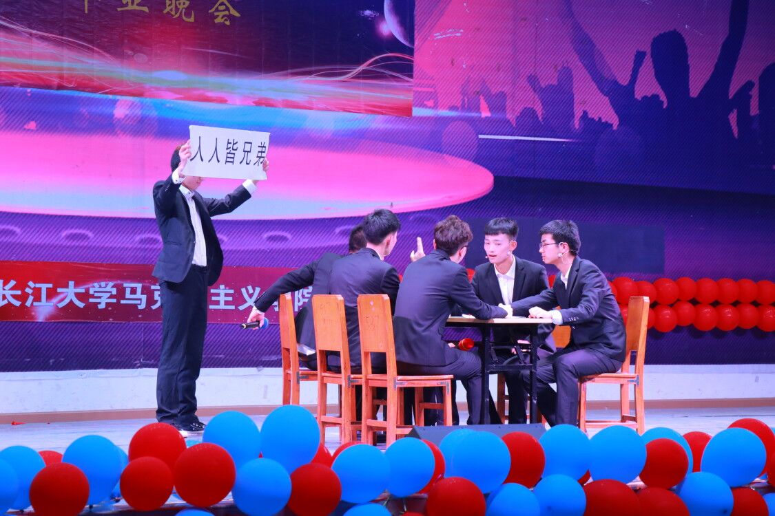 (通讯员 毛雨晴)春华秋实,寒暑数载;毕业在即,骊歌将起。6月13日晚7点,马克思主义学院2019届毕业生表彰大会暨毕业晚会在韦德体育bevictor东校区南苑小礼堂成功举办。学校发展规划处副处长谭泽春,学院院长王金洲、副院长姜学勤、党委副书记马小佼,学院教师贾廷秀、卢军、万敏、周涛、涂江波、李永刚、魏强、徐骆、高云鹏、肖芬蓉、汤波兰、张莉、王晓艳、程霞、张三霞、朱晶、张云雾等17位老师,以及韦德体育bevictor教师合唱团的部分老师、全院在校学生参加了晚会。
