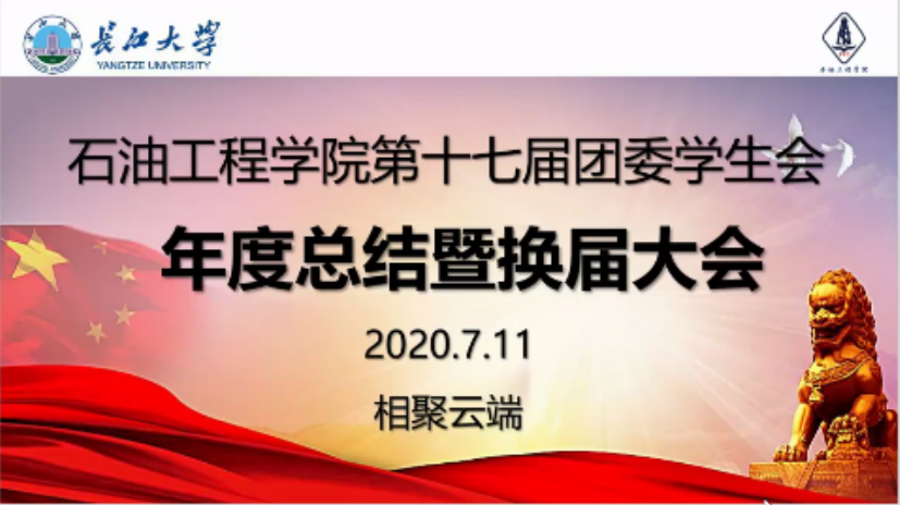 (通讯员 王枭)7月11日晚七时许,油院团委学生会借助腾讯会议平台顺利举行第十七届年度总结暨换届大会。石油工程学院党委副书记刘娥、学工办主任商麟鑫、沈伟正、辅导员老师朱晓露、刘少文、史永波、郭冀宁、黄灿出席本次会议。本次会议由团委学生会副主席刘景峰主持。