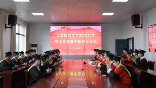 2020年6月28日上午10:00,计算机科学学院在5教501举行2020年毕业典礼暨学位授予仪式。学院院长崔艳荣,党委书记高明成,副院长向宇、詹炜、宋文广,党委副书记颜学俊,各系主任,全体辅导员及15名毕业生代表在现场参加毕业典礼。根据疫情防控要求,今年毕业典礼采取线上线下相结合的方式,未到现场的师生也通过腾讯会议参加了典礼。