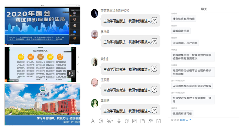 (通讯员:李傲雪)202061日至24日,外国语学院在校党委、校团委的指导下开展了本月的团会。其中大一、大二、大三以及研究生团支部以“学习两会精神,抗疫力行·诚信倡廉”为本月团会主题,进行了有关两会精神、共抗疫情、诚信、廉洁等思想的学习,毕业生团支部则侧重以“学习监察法,争做廉洁人”为主题进行了学习。此外,外国语学院所有团支部均参与了监察法的线上学习以及线上测试,对我国的监察法进行了深入了解。