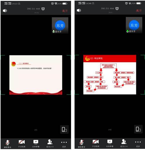 盖老师首先从“智慧团建”系统的使用方面,针对其使用环境和团员组织关系的转入转出进行了简要说明。接着,盖老师对于毕业学生团员团组织关系转接进行了详细的讲解,包括转接的类型和具体操作。为加深毕业生团员对于团员组织关系转接操作的理解,盖老师通过一些案例分析了各种转接操作,同时针对各种可能出现的错误情况进行了讲解。