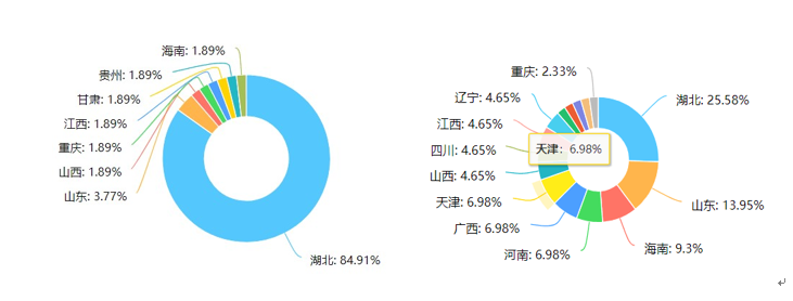 (左图为学生来源省份分布,右图为志愿家教来源省份分布)