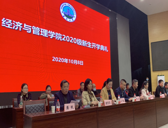 (通讯员 王巧)10月8日晚七点,韦德体育bevictor经济与管理学院2020级新生开学典礼于西校区文科大楼1058举行。院长徐辉、党委书记樊帆、党委副书记王中梅、分团委书记孙萌、学工办主任陈思杭、三位新生辅导员、新生班主任以及2020级全体新生参加了典礼。