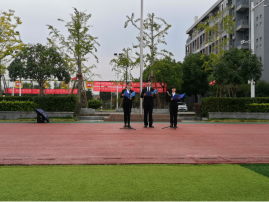 随后,主持人宣布本次的升旗活动正式开始,国旗护卫队迈着整齐而有力的步伐,朝升旗台走去,当国旗冉冉升起的那一刻所有人行注目礼,高声齐唱国歌。活动第二项,学生代表张浩杰发言,他讲到要把爱心献给需要帮助的人。“一方有难八方支援”历来都是我们中华民族的传统美德,正是一笔笔善款,一点点心意,汇集成抗击疫情的“滚滚暖流”。活动第三项,由青马班同学进行朗诵,他们以抑扬顿挫的朗诵赞美了那些平凡而又最美丽的天使。14亿中国人,共同抗击疫情,风雨之后,一定会有彩虹。众志成城,没有迈不过去的坎,没有打不赢的仗。