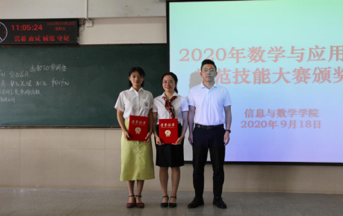 比赛尾声,评委老师与获奖者一一合影,院长张涛对比赛进行了总结,他肯定了各位数学与应用数学师范专业参赛学生的表达能力,并对在他们今后实习和工作中,如何备课、如何讲课做出了详细地指导。