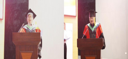 学生会主席董天舒宣读HSE国际健康安全准则后,国歌奏响,歌声嘹亮,毕业典礼暨授位仪式拉开序幕。副院长杨烨宣读授予学位的决定,副院长许巧情宣读表彰优秀毕业生的文件。