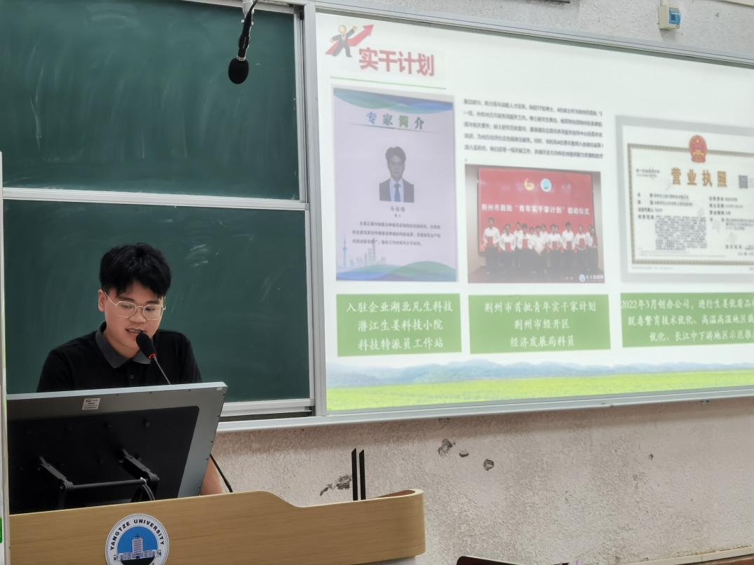 长大博士开“姜”拓土,马佳伟分享了公司的创业经历,依托硕士、博士期间对“长姜1号”种苗培育的课题,深入田间地头实践探索,开创“成果+创业”模式,助力乡村振兴。李则铭介绍了团队的发展历程和主要业务,“玩转长大”团队聚焦学生日常需求提供服务平台。他鼓励同学们在大学阶段多去试错,走出迷茫期。