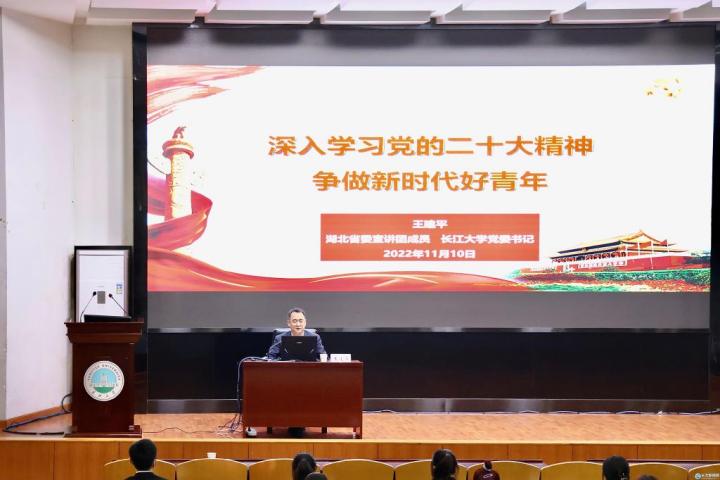 结业暨开班仪式结束后,王建平以“深入学习党的二十大精神,争做新时代好青年”为主题授课。