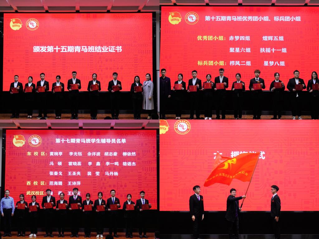 新闻网讯(学生记者 李盼 通讯员 陈兴旺 徐坤/文 学生记者 周格 通讯员 张子旭 周小乐/图 )11月10日下午,第十五期青马班结业暨第十七期青马班开班仪式在12教405报告厅举行,党委书记王建平现场专题授课,机关党委、学工部、组织部、宣传部、校团委相关负责人参加仪式。西校区、武汉校区同步视频观看。