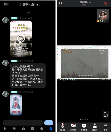 每个小组的活动各有特色和风采,碧岑六组通过腾讯会议观看了短片《习近平讲述的故事》,回顾了“九一八事变”这段历史,组员们表达了对于国家日趋强大而不会再任人宰割的激动和感恩心情。