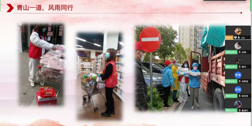 活动分为解读国内外疫情现状、深入学习习近平给北京大学援鄂医疗队全体“90后”党员的回信和领会总书记对青年一代“让青春在党和人民最需要的地方绽放绚丽之花”的寄语、疫情期间卫生防护知识竞答、青马学员分享抗疫志愿服务经历与感悟、“青山一道风雨同舟”话担当等环节。