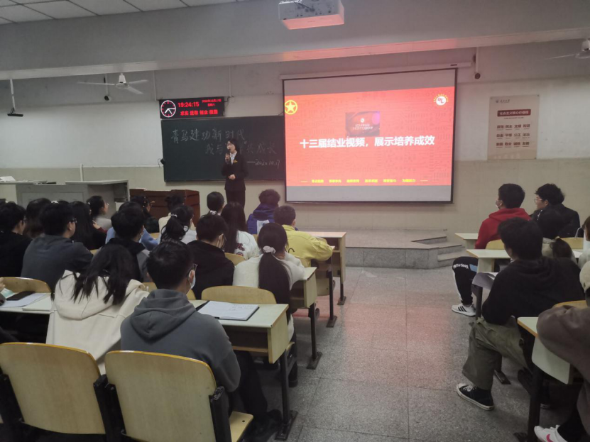 本次活动由青马班的黄华宝与华丹主持。活动中,两位宣讲人为同学们分享了他们在青马班生活与学习中的的点点滴滴与感悟。他们带领大家学习传达了《关于遴选韦德体育bevictor青年马克思主义者培训班第十五期学员的通知》,同时也给大家讲解了青马班的要求,遴选流程以及培养形式,让同学们对青马班有了基础的了解。他们回顾了自己在青马班的经历,给同学们分享了许多经验与感悟。活动中,他们播放了在青马班学习、生活与成长的记录视频,同学们颇有感触。