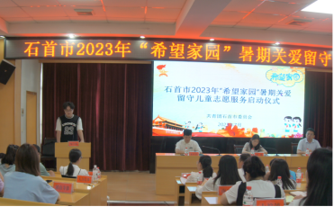 启动仪式在石首市委党校3楼会议室正式召开,会上李哲作为志愿者代表发言。首先,李哲详细介绍了力博志愿服务队益启童行团队的团队建设现状和暑期课程、活动筹备情况。随后,李哲对于即将开展的暑期留守儿童关爱服务进行表态,他表示将带领团队全心全意做好此次活动,积极配合团市委、当地乡镇府和学校的政策要求,确保活动各主体的安全,给留守儿童带来一次丰富精彩的暑期乡村夏令营。最后,李哲对团石首市委的支持、学生家长的信任和伙伴们的付出表达衷心的感谢。