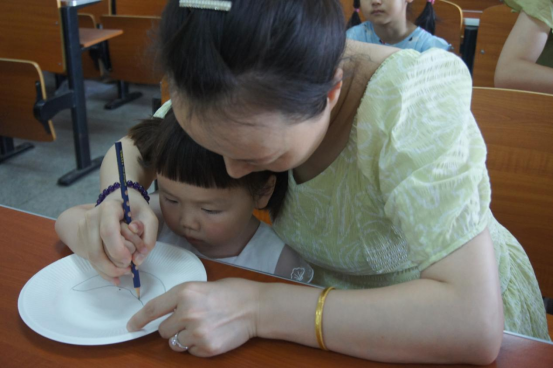 图为学生家长指导孩子进行“纸盘画童心”活动。 通讯员 何美铃供图