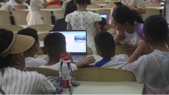 7月8日下午2时许,“愿益”社会实践团队的研究生们带领周边韦德体育bevictor社区中小学生们来到学校东校区12教1楼,带领他们亲身参与工智能的应用场景创意绘画和儿童创意编程游戏。“愿益”团队成员通过模块化编程软件,学习如何利用编程语言来创造游戏的魔法世界。其中,最受欢迎的是“大鱼吃小鱼”的游戏设计,孩子们通过自己的动手实现了这个精彩的游戏,大家都被他们的创造力和智慧所感动。他们投入其中,不断调试程序,提高效率和准确性。当他们成功解决问题时,他们脸上绽放出胜利的笑容,这种创造的乐趣和成就感激发了他们对编程的浓厚兴趣。