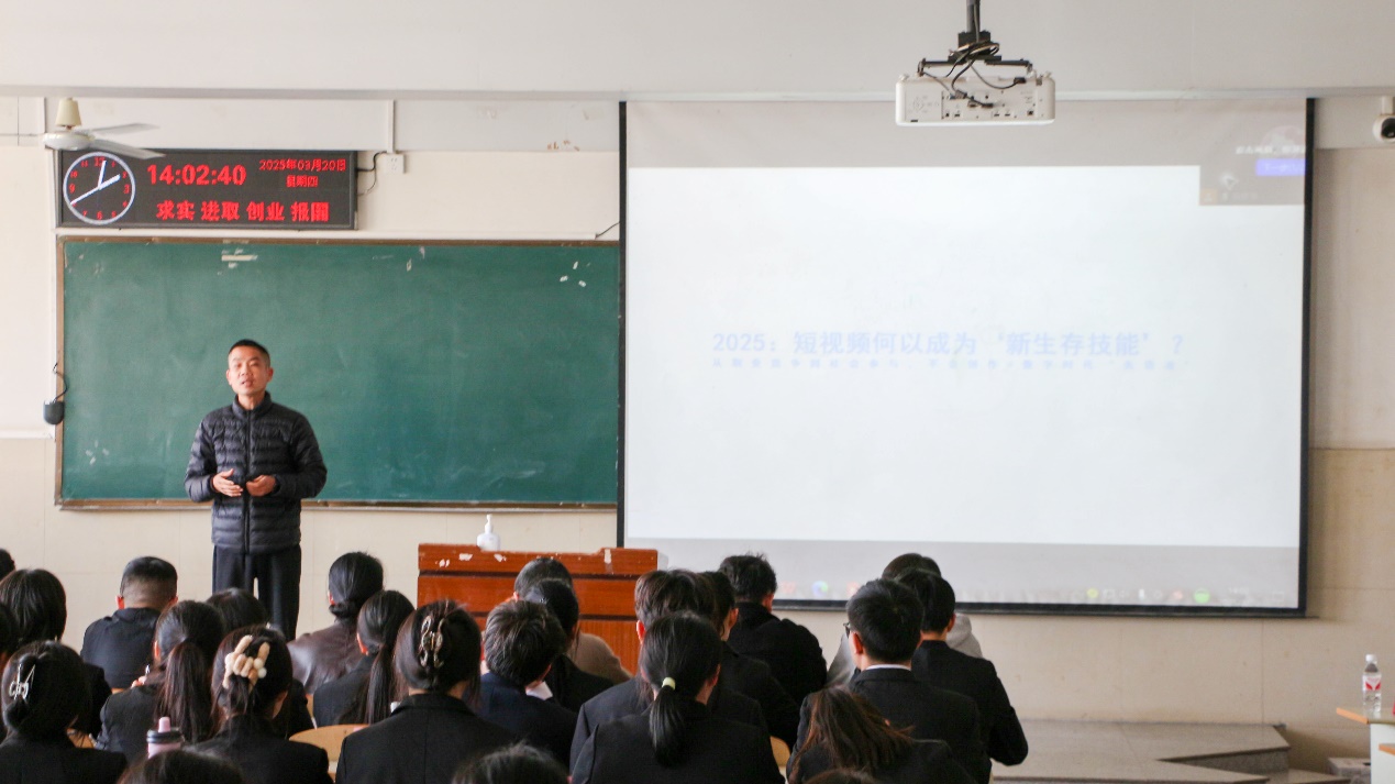 【多维赋能宣传工作】职业规划师吕兵强调了短视频在当下社会的重要性,他从媒介发展趋势、青年话语表达、职业竞争力构建三个维度,系统阐释了短视频在信息传播领域的重要性,指出在信息传播日益多元化的今天,短视频已成为一种重要的表达方式,建议学生骨干在内容创作中注重价值引领与情感共鸣。