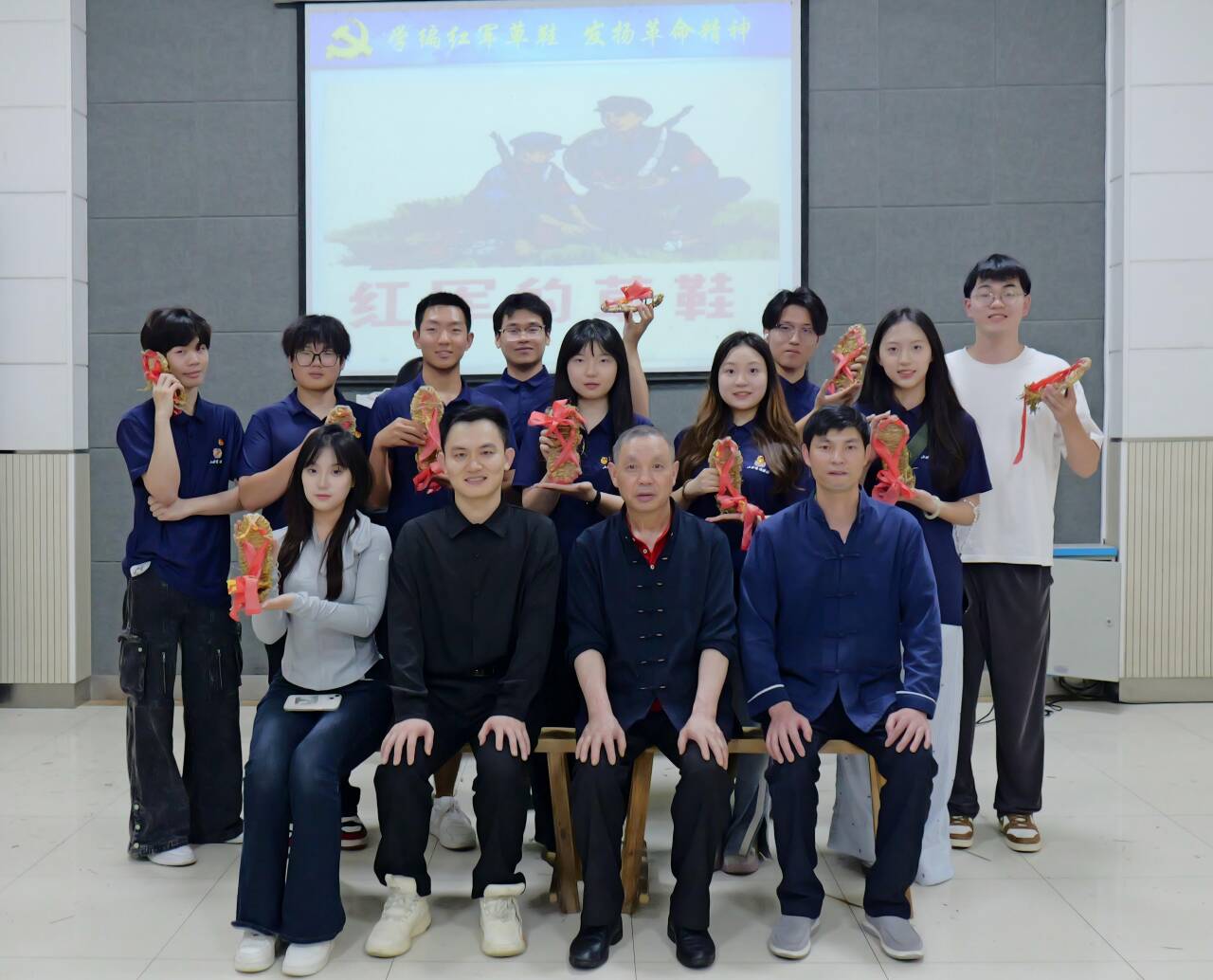 难忘那日的“急行军”。天空下着瓢泼大雨,队员们身披雨衣,踏上了当年的红军路。泥泞的山道、湿透的衣背,让大家切身体会到了“红军不怕远征难”从来不是一句空洞的口号。在坝下村,队员们走进老乡家中,生火做饭,体验乡村生活。在与一位老手艺人的交流中,大家更是亲手尝试编织红军草鞋。粗糙的稻草磨得指尖发涩,却让“艰苦奋斗”四个字顺着指尖,深深渗透进每个人的心田。队员熊若冰说:“这不仅仅是一件物品,它是有温度、有故事的。它告诉我们,革命的胜利,就是靠这样一双双草鞋、一个个朴素的信念走出来的。”