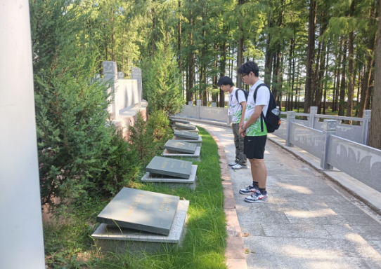 下午,团队兵分两路,一队赴万家墩村与王主任交流,了解到村里“积分超市”的创新机制——参与垃圾清理可兑换生活用品,这让队员们深受启发;另一队前往湘鄂西苏区革命历史纪念园,在烈士陵园前庄严宣誓,将红色精神与生态保护的责任牢牢铭记。随后,大家来到江滩公园清理垃圾,路过的游客被感染,纷纷加入进来,夕阳下,一群人的身影构成了最美的风景线。