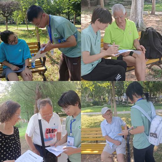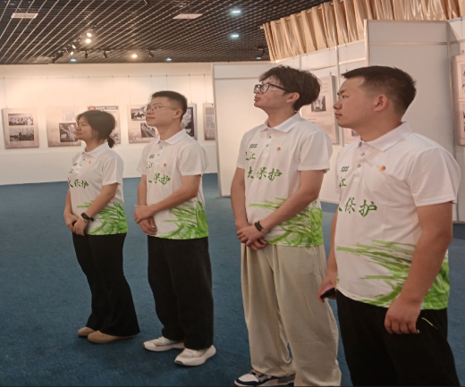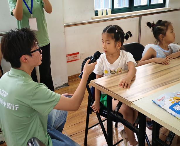 最让人难忘的是7月9日与洪湖湿地自然保护区管理局的座谈。队员们结合专业知识,提出了“沉积物总汞超标对植被恢复的影响”等专业问题,主任的耐心解答让大家受益匪浅。“生态保护需要一代又一代人的坚持。”主任的话让队员们深感责任重大。午后的一场阵雨过后,大家走进洪湖在“抗日战争胜利80周年图片展”前驻足沉思,红色历史的洗礼让护水的信念更加坚定。傍晚时分,队员们冒着湿热的天气,在洪湖市区开展问卷调研。吴梦佳遇到一位正在修车的大叔,便逐题念出选项,认真记录他的答案,还贴心地用方言讲解护水小知识。